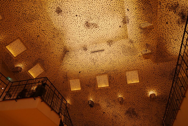 天井にはごま塩のように細かく砕いた炭が散りばめられています。